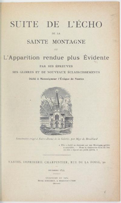- L’Écho de la Sainte Montagne - 1852 : PDF Google, première édition de 1852 ou troisième édition de 1854